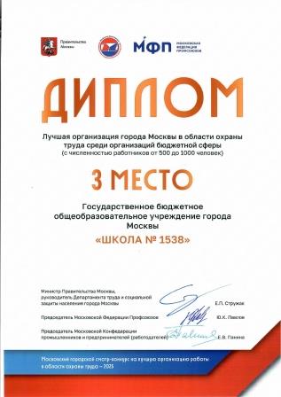 - Третье место: Государственное бюджетное общеобразовательное учреждение города Москвы «Школа № 1538».